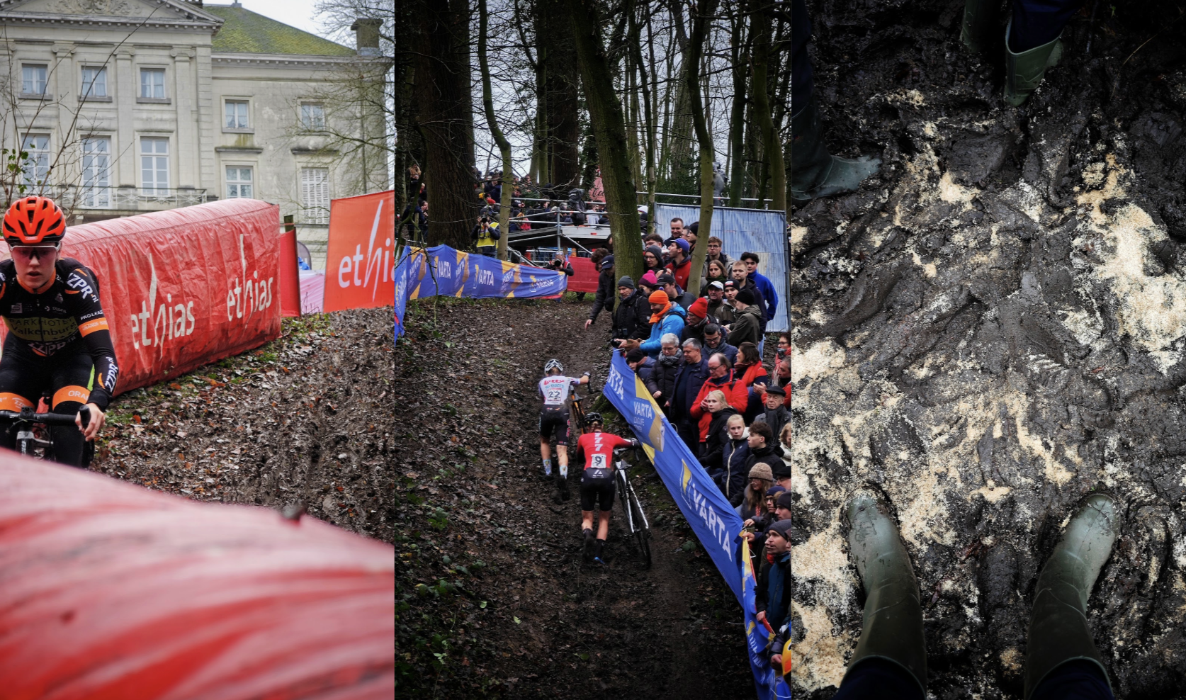 Gavere (BEL) a tout ce qu’il faut pour ne pas être emprunté à vélo. Une boue d’une viscosité sans égale – au point où un concurrent en a perdu sa chaussure ! –, un rec où la meilleure ligne nécessite de venir s’écraser dans un énorme matelas gonflant, et un parcours où un dévers à droite précède un dévers à gauche. Même le stand mécanique est mis à rude épreuve avec un changement de vélo à chaque demi-tour.