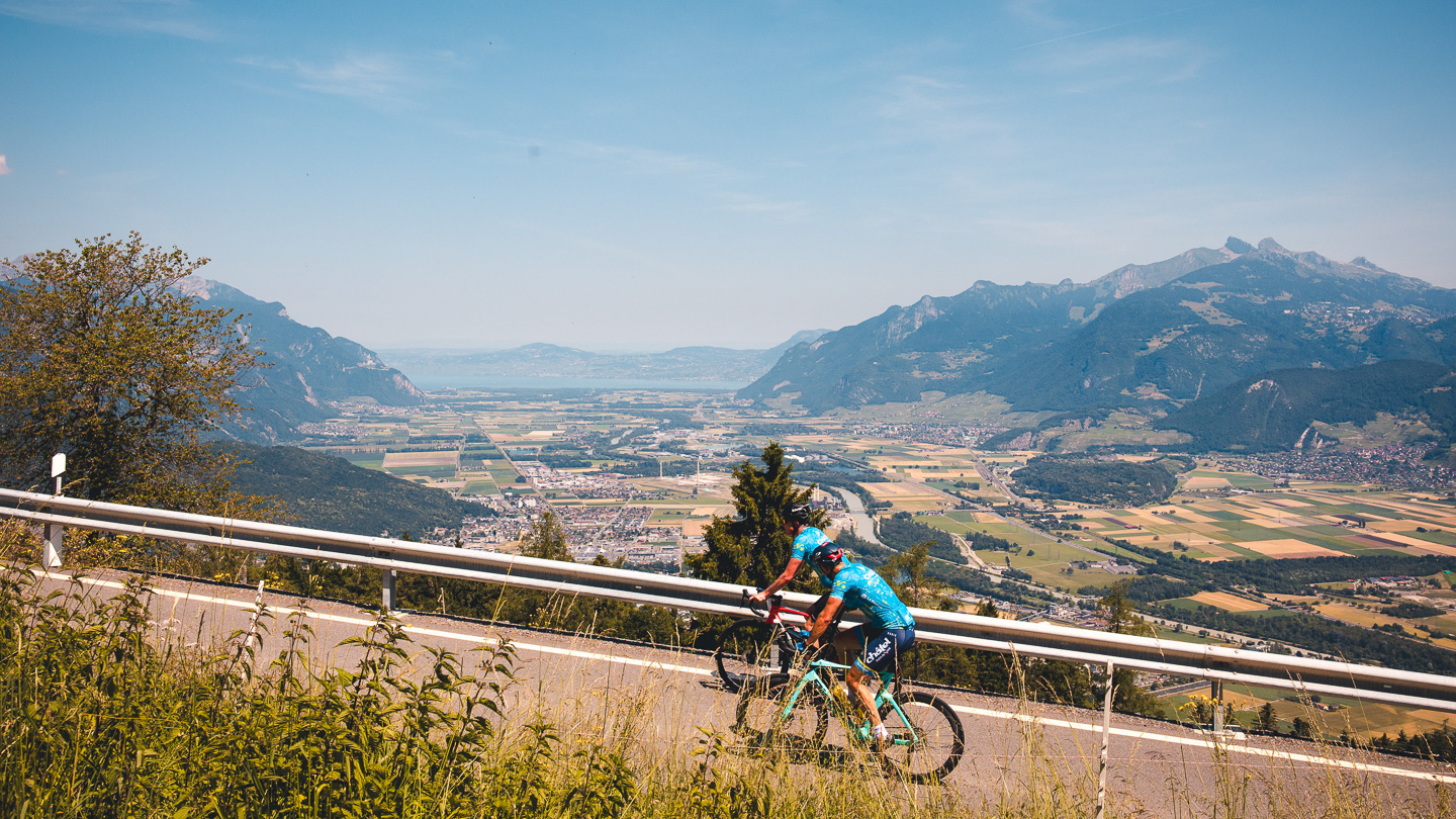 Après le ravitaillement au Centre Mondial du Cyclisme à Aigle, le retour vers Champéry se fait avec la montée des Rives, au pied des imposantes Dents du Midi.