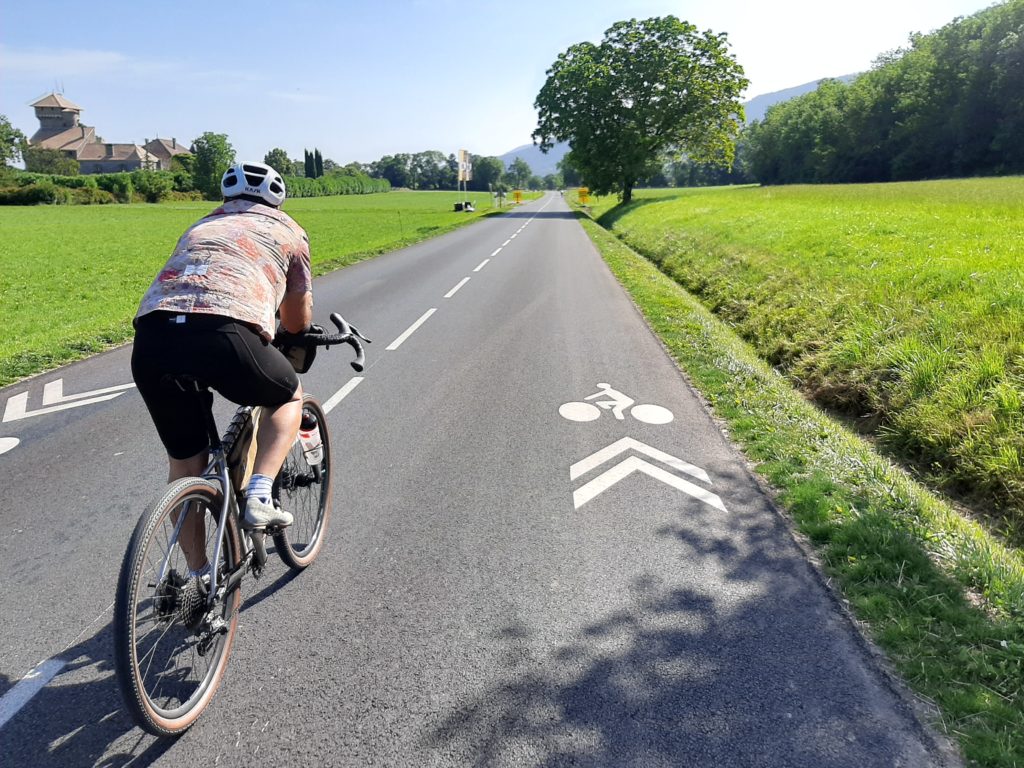 Le départ se fait depuis la gare de Chêne-Bourg, aux portes de Genève, et l’itinéraire suit une première section connue jusqu’au lac de Machilly. Par la suite, il continue en direction de Bons-en-Chablais et accompagne sur 5km la voie ferrée sur des routes de gravier.