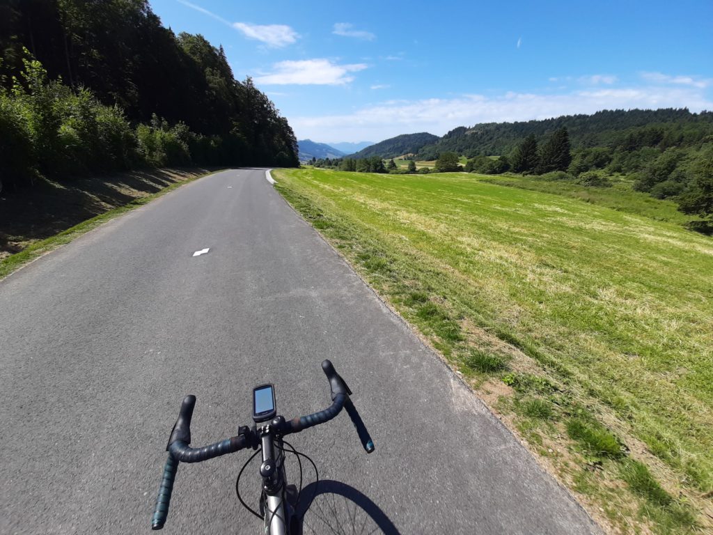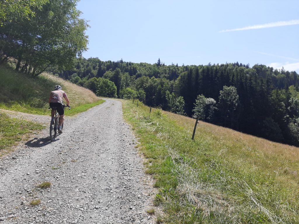 La descente attend encore un petit peu car juste après le col, on bifurquera à gauche sur un joli sentier de gravier offrant une belle vue sur la vallée que vous aller traverser. Par la suite, la trace varie entre routes forestières, sentiers et bitume, le long de la Menoge.