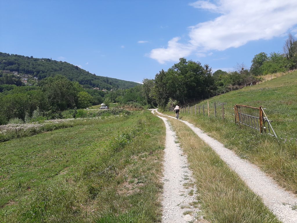 Après Perrignier, les choses sérieuses commencent avec l’ascension du col qui a ceci d’original qu’il fait un chassé-croisé avec la route (attention en traversant, les voitures vont vite) jusqu’au hameau « Chez Roch ».