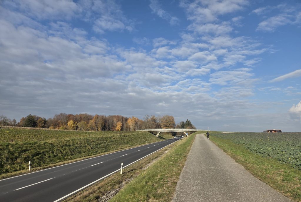 Depuis Lausanne, nous prenons la direction de Bussigny. De là nous alternerons entre traversées de petites parcelles boisées et parcelles agricoles.