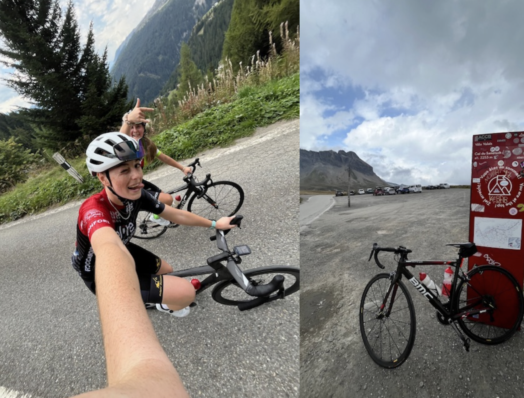 Une photo, les vestes de pluie, et on est vite redescendues avant que la route ne devienne trempée. Arrivées en bas, c’était comme un retour à la réalité : il faisait beau, les gens s’agitaient dans tous les sens, et nous, on redescendait de notre petit moment hors du temps. Car oui, en haut du col, l’impression d’être seule au monde et de ne plus penser à rien était bien présente.